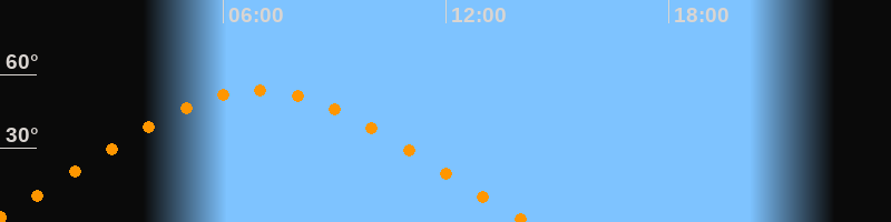 | Höchster Stand (Kulmination) | 06:58 Uhr (h = 53,4°) |