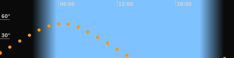 | Höchster Stand (Kulmination) | 06:19 Uhr (h = 53,4°) |