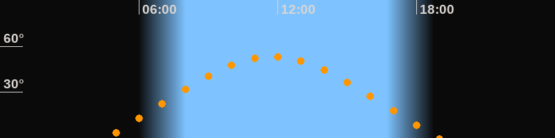| Höchster Stand (Kulmination) | 11:45 Uhr (h = 53,4°) |