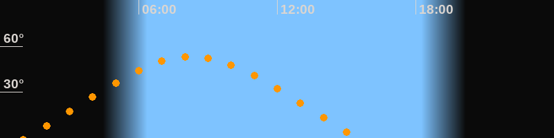 | Höchster Stand (Kulmination) | 08:16 Uhr (h = 53,4°) |