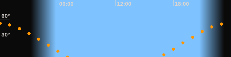 | Untergang | 07:05 Uhr im Nordwesten (αAz = 293,5°) |