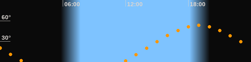 | Aufgang | 11:45 Uhr im Nordosten (αAz = 66,5°) |