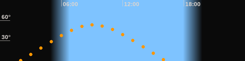 | Höchster Stand (Kulmination) | 09:05 Uhr (h = 53,4°) |