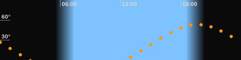 | Aufgang | 12:25 Uhr im Nordosten (αAz = 66,5°) |