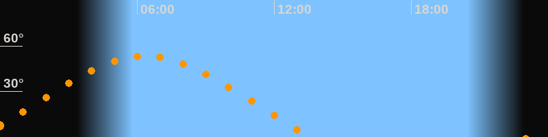 | Höchster Stand (Kulmination) | 06:21 Uhr (h = 53,4°) |