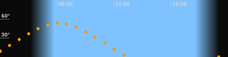 | Höchster Stand (Kulmination) | 06:10 Uhr (h = 53,4°) |