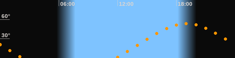 | Höchster Stand (Kulmination) | 19:01 Uhr (h = 53,4°) |