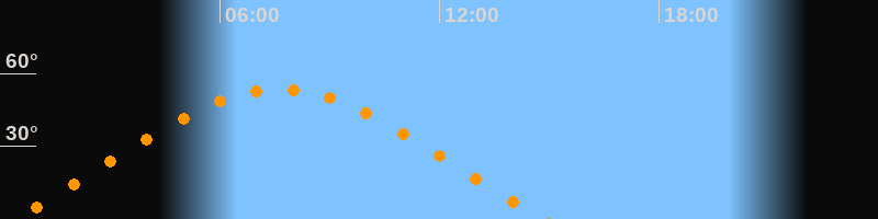 | Höchster Stand (Kulmination) | 07:37 Uhr (h = 53,4°) |