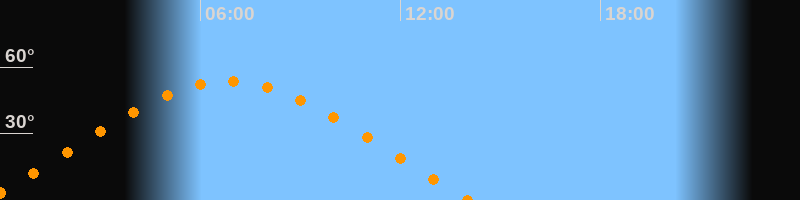 | Untergang | 14:04 Uhr im Nordwesten (αAz = 293,5°) |