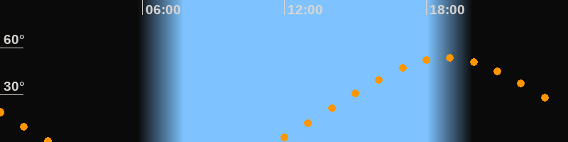 | Aufgang | 11:36 Uhr im Nordosten (αAz = 66,5°) |