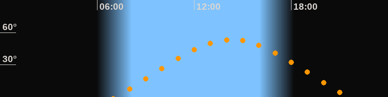 | Höchster Stand (Kulmination) | 14:18 Uhr (h = 53,4°) |