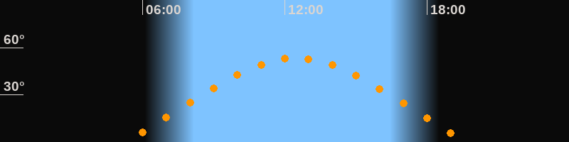 | Höchster Stand (Kulmination) | 12:28 Uhr (h = 53,4°) |