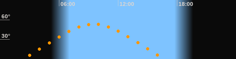 | Höchster Stand (Kulmination) | 09:31 Uhr (h = 53,4°) |