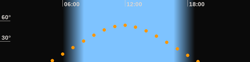 | Höchster Stand (Kulmination) | 11:54 Uhr (h = 53,4°) |