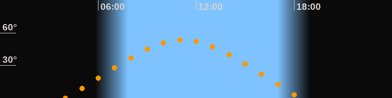 | Höchster Stand (Kulmination) | 11:10 Uhr (h = 53,4°) |
