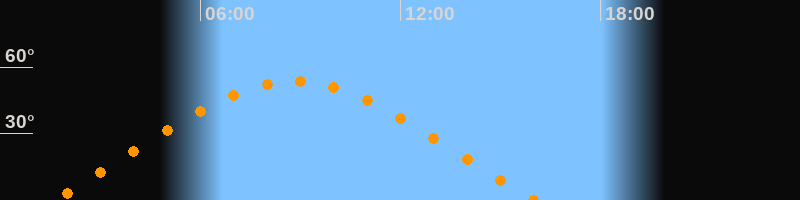 | Höchster Stand (Kulmination) | 08:49 Uhr (h = 53,4°) |