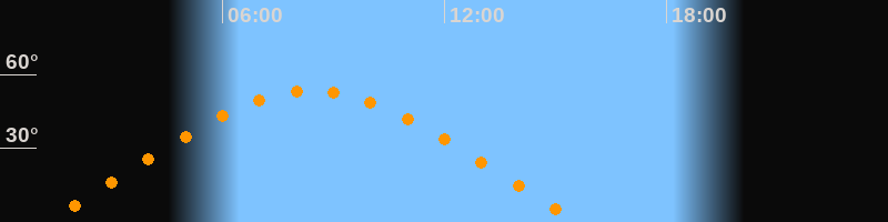 | Höchster Stand (Kulmination) | 08:25 Uhr (h = 53,4°) |