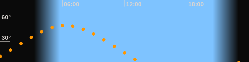 | Höchster Stand (Kulmination) | 06:16 Uhr (h = 53,4°) |
