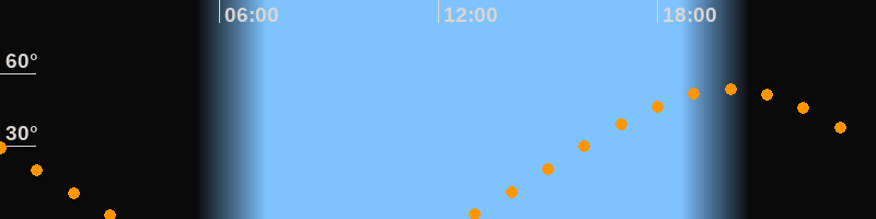 | Aufgang | 12:42 Uhr im Nordosten (αAz = 66,5°) |
