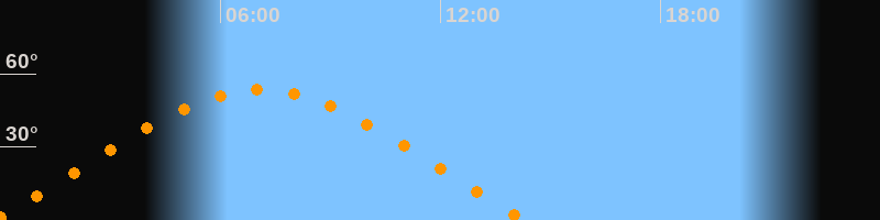 | Höchster Stand (Kulmination) | 07:06 Uhr (h = 53,4°) |
