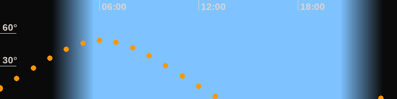 | Höchster Stand (Kulmination) | 06:07 Uhr (h = 53,4°) |