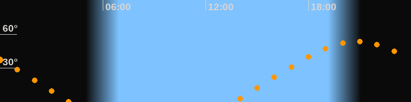 | Aufgang | 13:35 Uhr im Nordosten (αAz = 66,5°) |