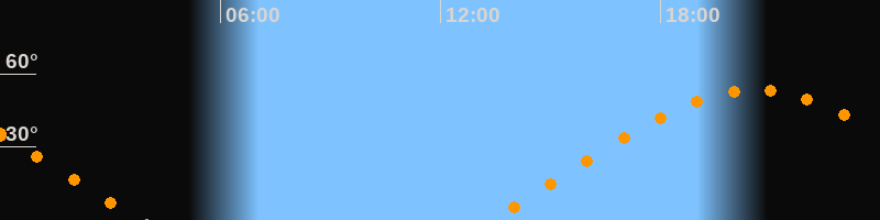 | Aufgang | 13:19 Uhr im Nordosten (αAz = 66,5°) |