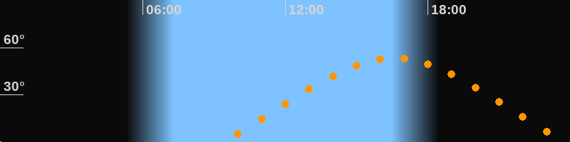 | Höchster Stand (Kulmination) | 16:34 Uhr (h = 53,4°) |