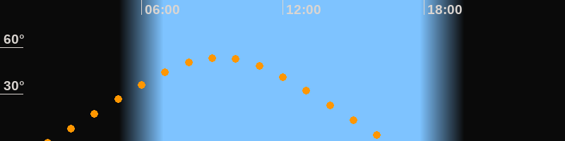 | Höchster Stand (Kulmination) | 09:17 Uhr (h = 53,4°) |