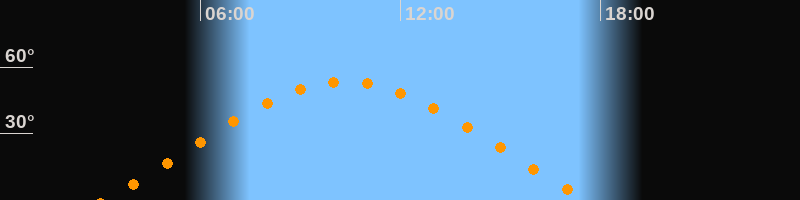 Höchster Stand (Kulmination)10:21 Uhr (h = 53,4°)