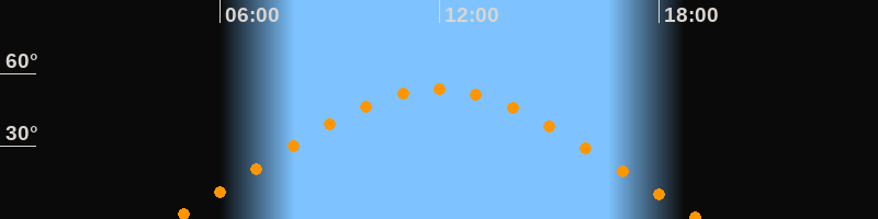 | Höchster Stand (Kulmination) | 11:56 Uhr (h = 53,4°) |