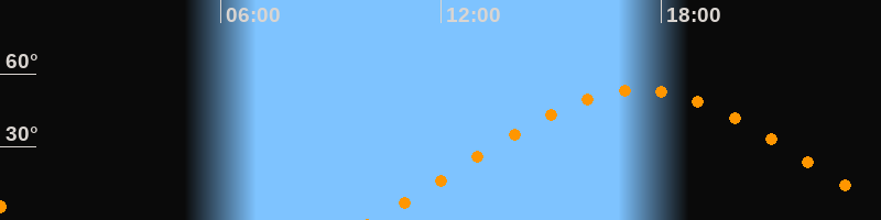 Höchster Stand (Kulmination)17:24 Uhr (h = 53,4°)
