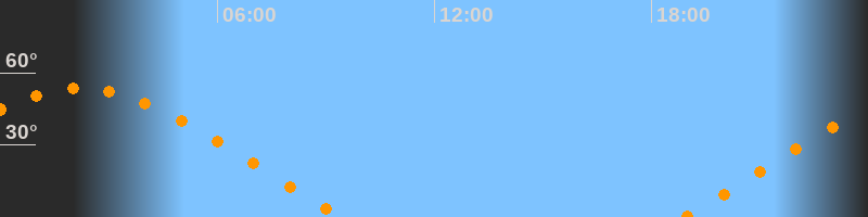 | Aufgang | 18:54 Uhr im Nordosten (αAz = 66,5°) |