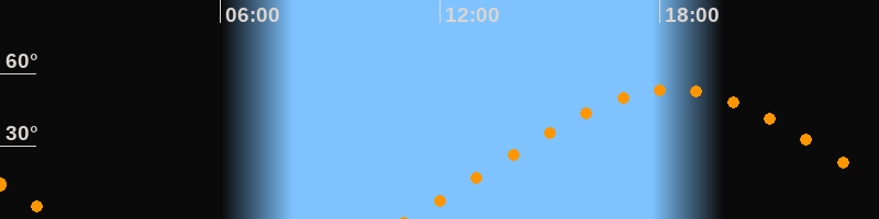 Höchster Stand (Kulmination)18:21 Uhr (h = 53,4°)