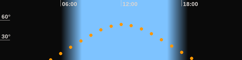 | Höchster Stand (Kulmination) | 12:06 Uhr (h = 53,4°) |