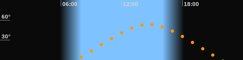 Höchster Stand (Kulmination)14:40 Uhr (h = 53,4°)