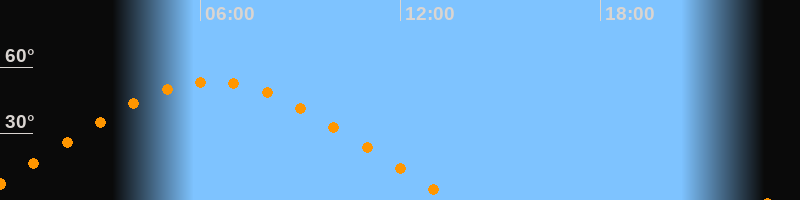 Höchster Stand (Kulmination)06:22 Uhr (h = 53,4°)