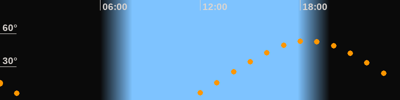 Höchster Stand (Kulmination)18:26 Uhr (h = 53,4°)