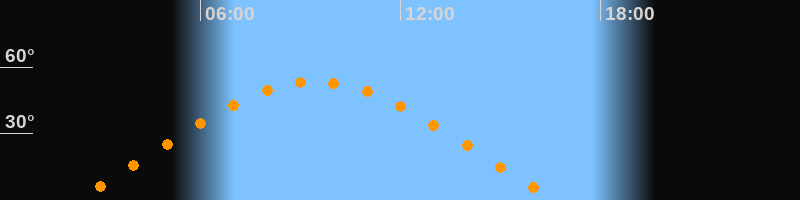 | Höchster Stand (Kulmination) | 09:27 Uhr (h = 53,4°) |