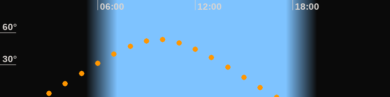 | Höchster Stand (Kulmination) | 09:47 Uhr (h = 53,4°) |