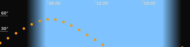 Höchster Stand (Kulmination)06:20 Uhr (h = 53,4°)