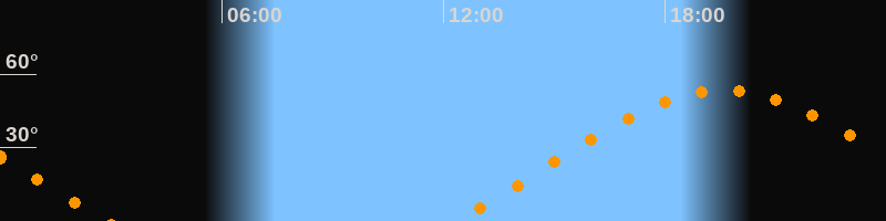 | Aufgang | 12:21 Uhr im Nordosten (αAz = 66,5°) |