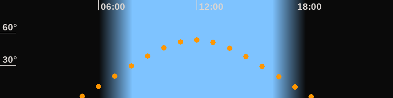 | Höchster Stand (Kulmination) | 11:58 Uhr (h = 53,4°) |
