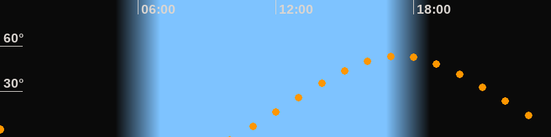 Höchster Stand (Kulmination)17:21 Uhr (h = 53,4°)