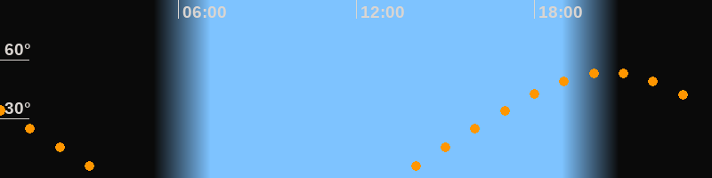 Aufgang13:14 Uhr im Nordosten (αAz = 66,5°)