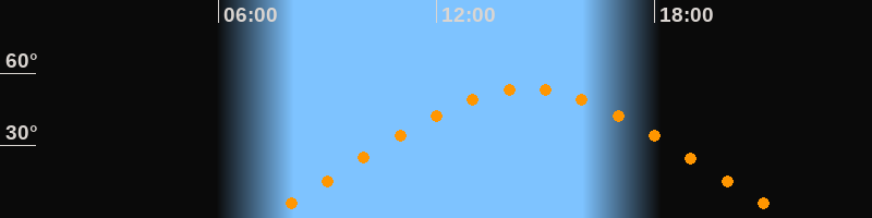 | Höchster Stand (Kulmination) | 14:29 Uhr (h = 53,4°) |