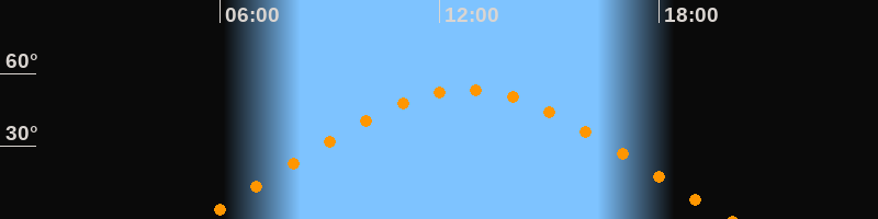 Höchster Stand (Kulmination)12:43 Uhr (h = 53,4°)