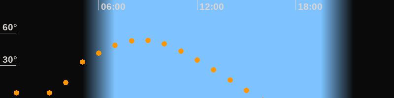 Höchster Stand (Kulmination)08:37 Uhr (h = 53,4°)