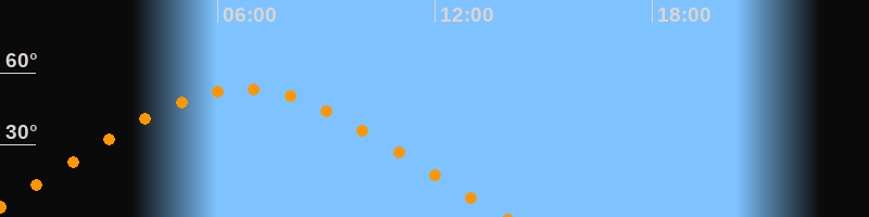| Höchster Stand (Kulmination) | 06:43 Uhr (h = 53,4°) |