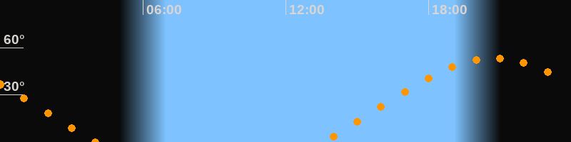 | Aufgang | 13:30 Uhr im Nordosten (αAz = 66,5°) |